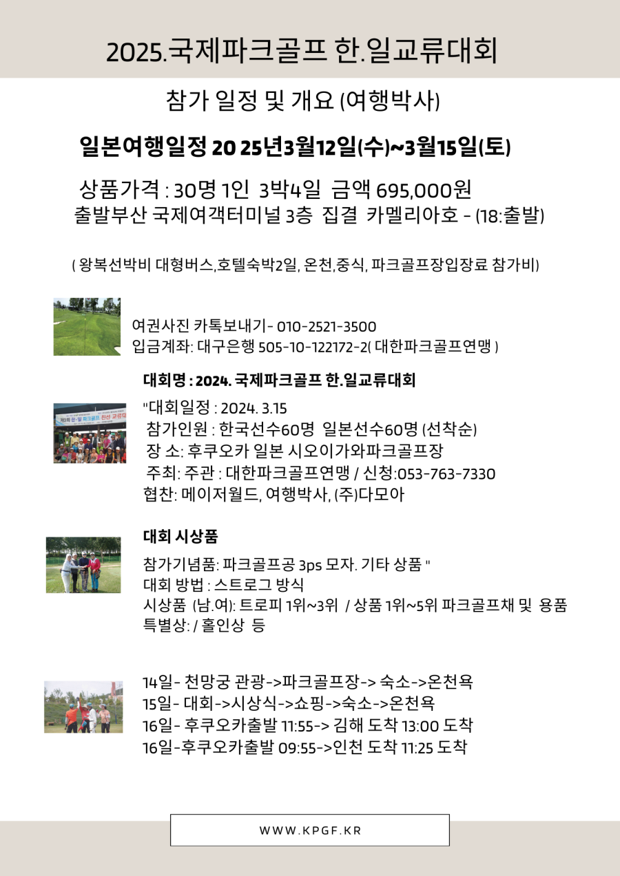 공지사항 2025국제파크골프한일교류대회 작성자 : 최고관리자 작성일 : 25-03-17 10:55 조회수 : 2,781회 다음글 대구교총 직무연수 개설 과정 및 안내 사항 24.12.06 이전글 월간 파크골프 매거진 기자 모집공고 25.03.17 목록