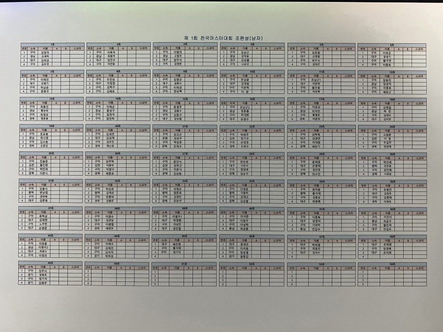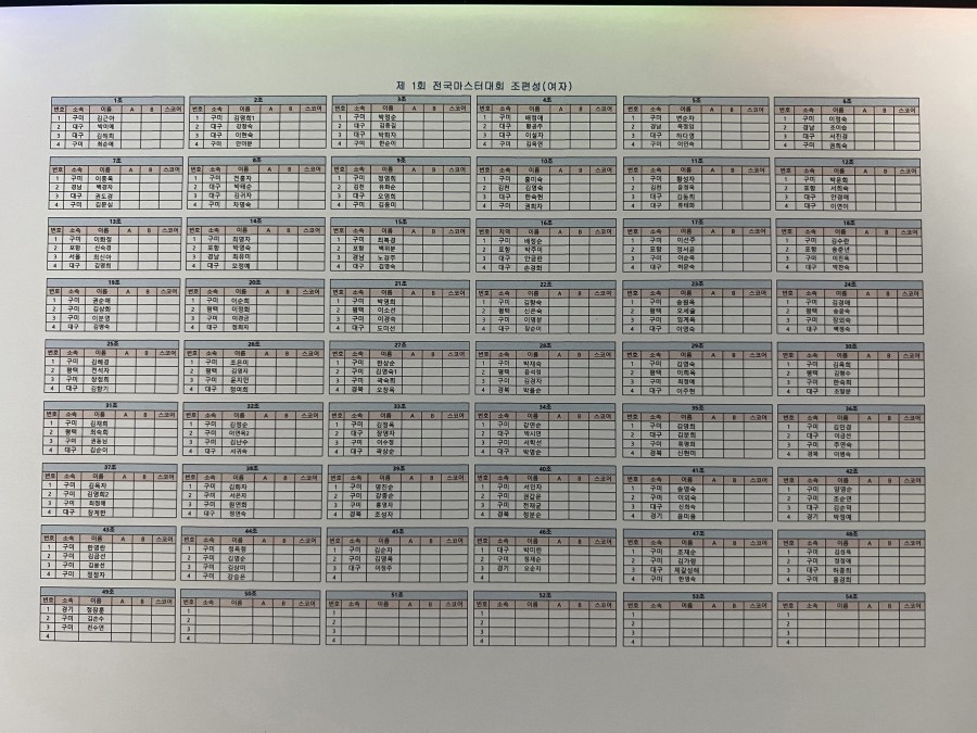공지사항 제1회 마스터즈 대회 조편성입니다. 작성자 : 관리자 작성일 : 23-05-17 12:09 조회수 : 4,435회 안녕하세요이번 마스터즈대회 조편성입니다. 다음글 2023대한노인체육회 임시총회 23.05.08 이전글 제1회 마스터즈 대회순위입니다. 23.05.22 목록