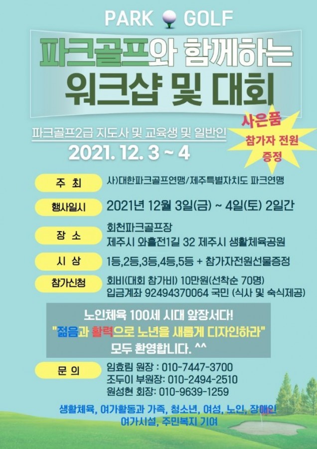공지사항 지역회장단및 지도자 제주도 워크샵 작성자 : 관리자 작성일 : 21-11-22 11:24 조회수 : 4,313회 1박2일 다음글 11월20일 혼마선수권대회 시상결과 21.11.22 이전글 대한파크골프연맹 2급지도자 양성과정 21.11.22 목록