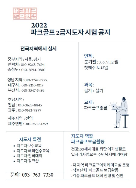 공지사항 전국파크골프지도자시험 작성자 : 관리자 작성일 : 22-08-18 20:59 조회수 : 4,837회 첨부파일 지도자시험응시원서-1.hwp (56.5K) 1 다음글 파크골프2급지도자과정 대구연맹 22.07.17 이전글 전남파크골프연맹 지도자교육 22.08.29 목록