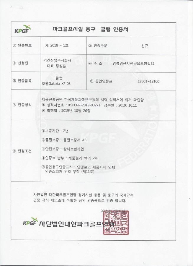 1. 대한파크골프연맹- 파크골프용품 제작품 인증의뢰
