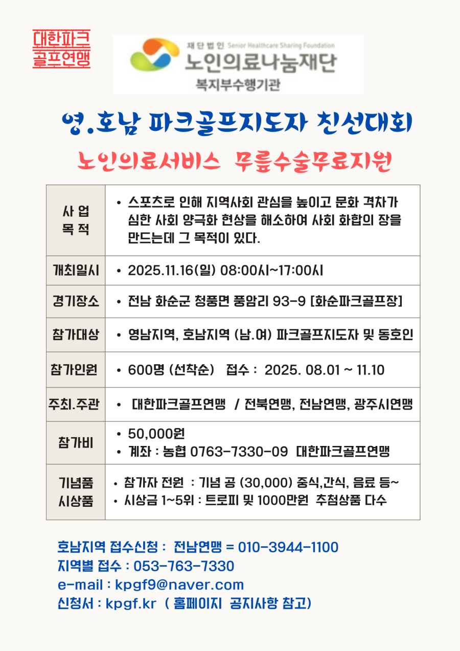 공지사항 2025 영호남파크골프지도자친선대회 작성자 : 최고관리자 작성일 : 25-07-21 16:43 조회수 : 2,618회 1 다음글 연맹 2025년 하반기 전국대회 일정 25.07.01 이전글 생활스포츠2급지도사연수교육지정단체 25.08.12 목록