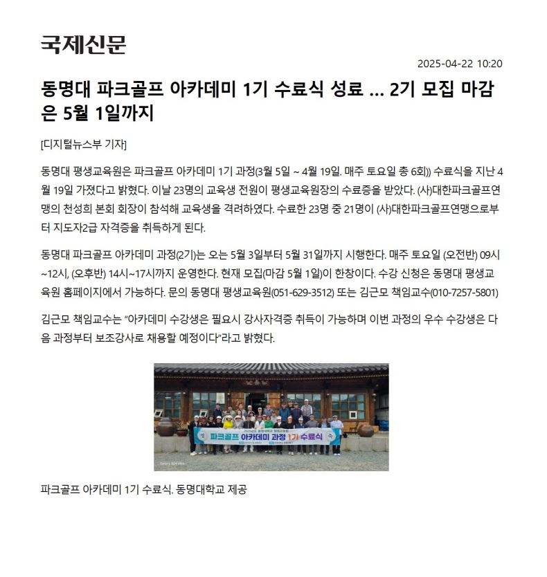 전국연맹소식 부산동명대학교파크골프아카데미수료식 작성자 : 최고관리자 작성일 : 25-04-29 18:57 조회수 : 2,071회 다음글 대구시파크골프연맹이사회 25.04.27 이전글 원광대지도자 광주여대지도자친선교류대회 25.06.03 목록
