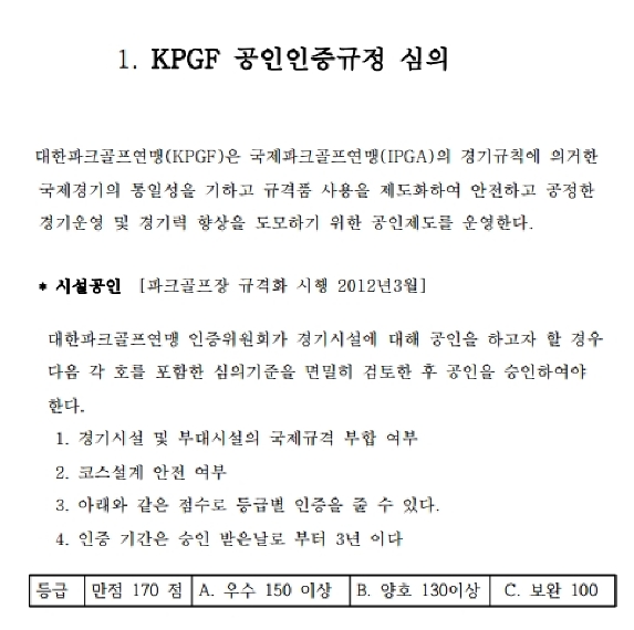 공인파크골프장 검정내용
